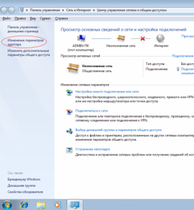 2. В полученном окне выбираем слева раздел "Изменение параметров адаптера"